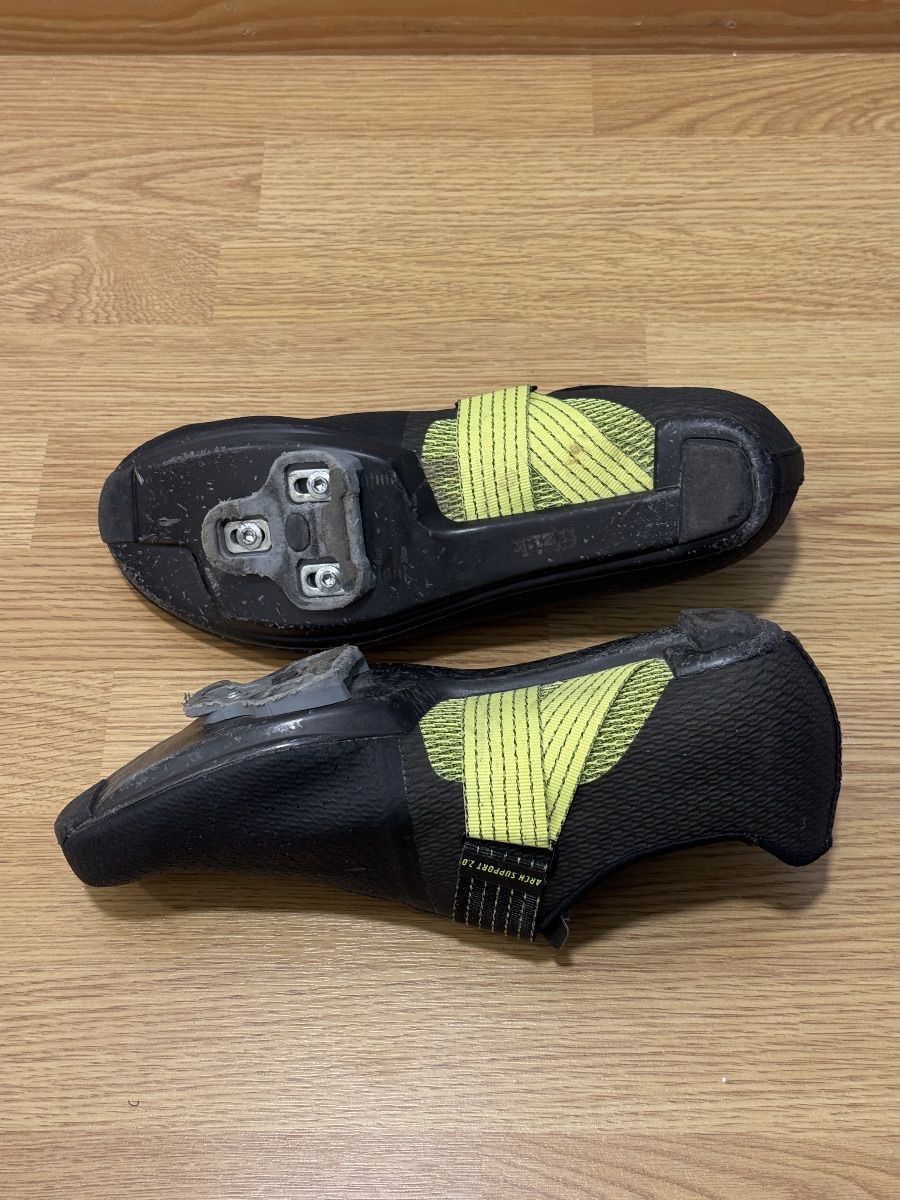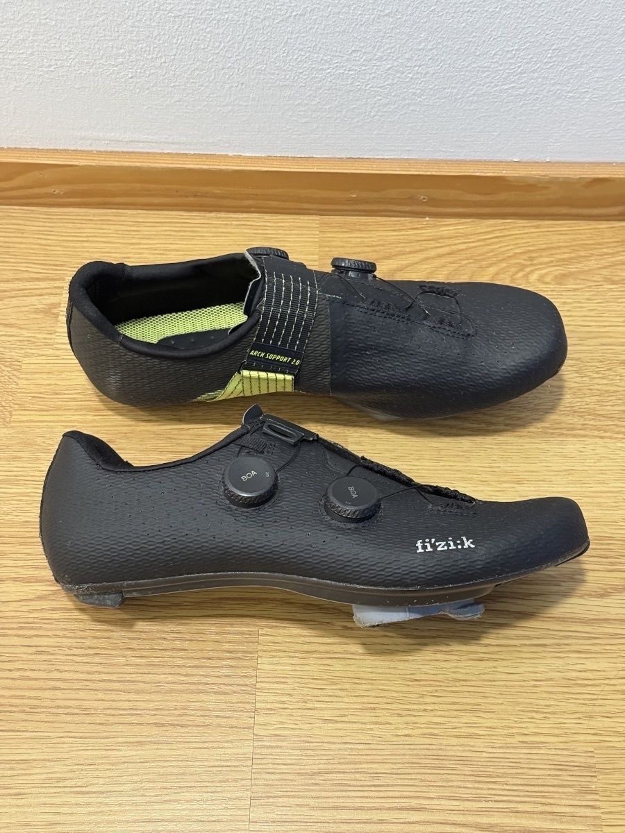 Fizikin huippukenkä maantiepyöräilyyn. Muutaman kesän ajetut täysin kunnossa olevat Fizikin lippulaivamallit, huippukengät maantiepyöräilyyn. Hinta uutena ollut yli 400 euroa. Vähän käytön jälkiä. Boa-kiristykset toimii kuten pitääkin ja ovat ehjät. Koko 44. Kengissä kiinni olevat jo hieman kuluneet Lookin klossit tarvittaessa mukaan. Dynamic Arch Support 2.0 toimii kengässä erittäin hienosti.