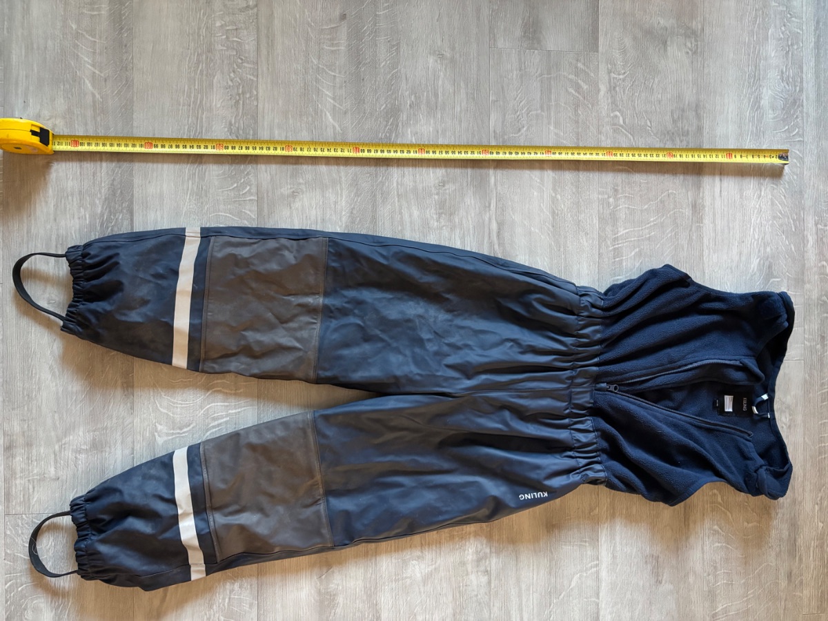 Takki ja housut. Ehjät, hyvässä kunnossa. Vuori tummansinistä fleeceä, värit kirkkaat. Housuissa näkyy kuvassa jotain varjoa/haalistumaa, ovat kuitenkin ehjät (ei kulumaa) eikä väri ole noin korostetun erilainen polvista alaspäin.Tuotteen kunto: Hyvä