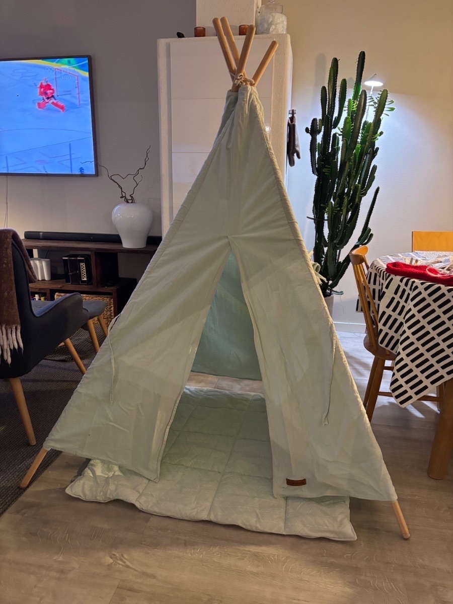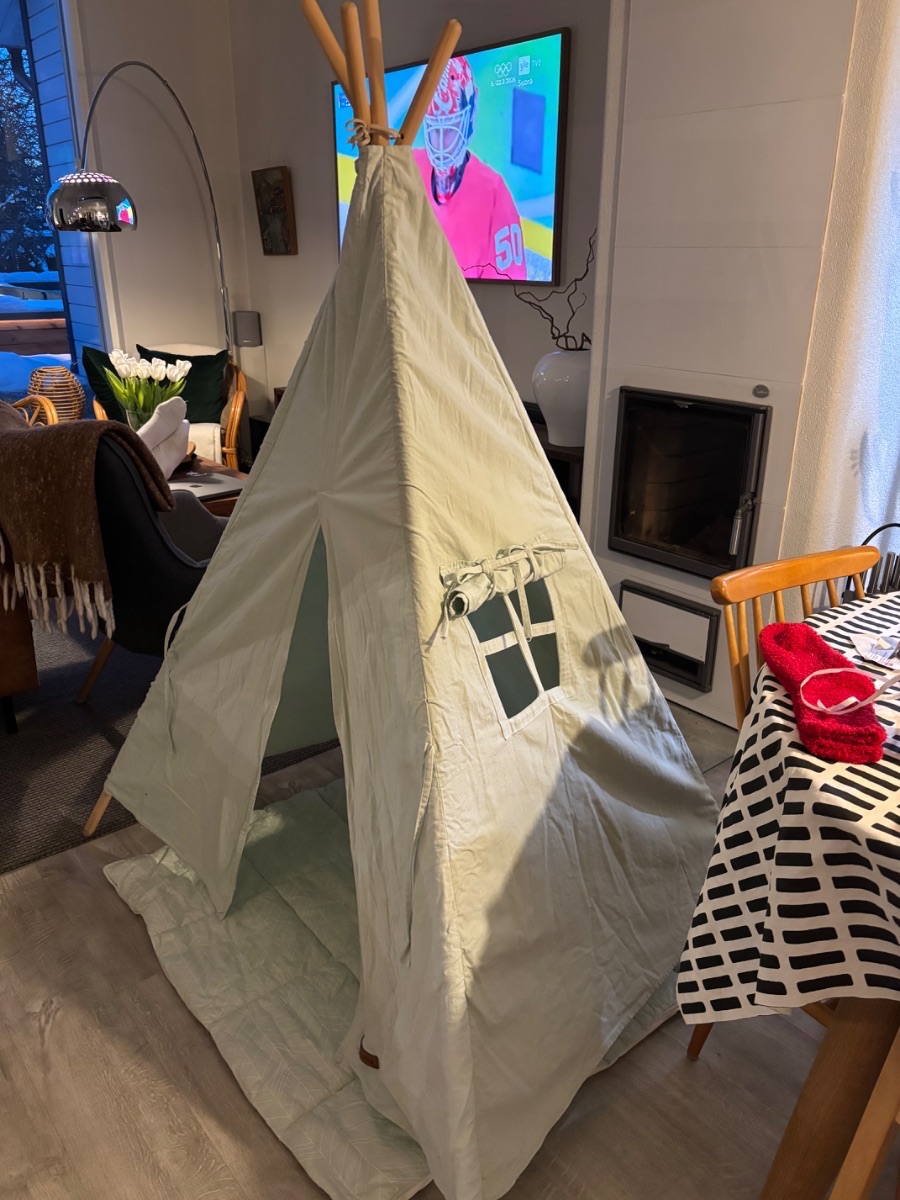 Little Dutch lasten leikkiteltta. Teltta on puuvillaa, se kasataan vaan nostamalla se pystyyn. Alusta on irrallinen.Tuotteen kunto: Hyvä