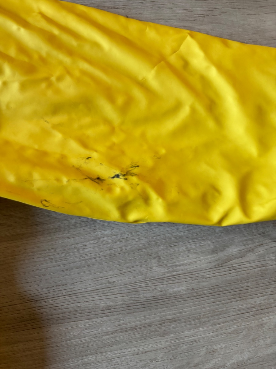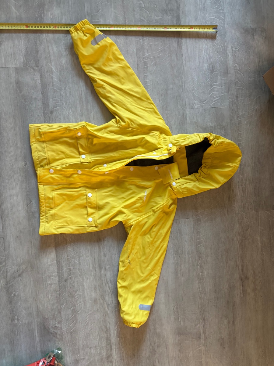 Ehjä, vettäpitävä sadeasu (takki & housut) fleece-vuorella. Toisessa hihassa rasvatahra, en ole yrittänyt poistaa kuin normipesulla. Tosi vähän käytetty asu.Tuotteen kunto: Hyvä